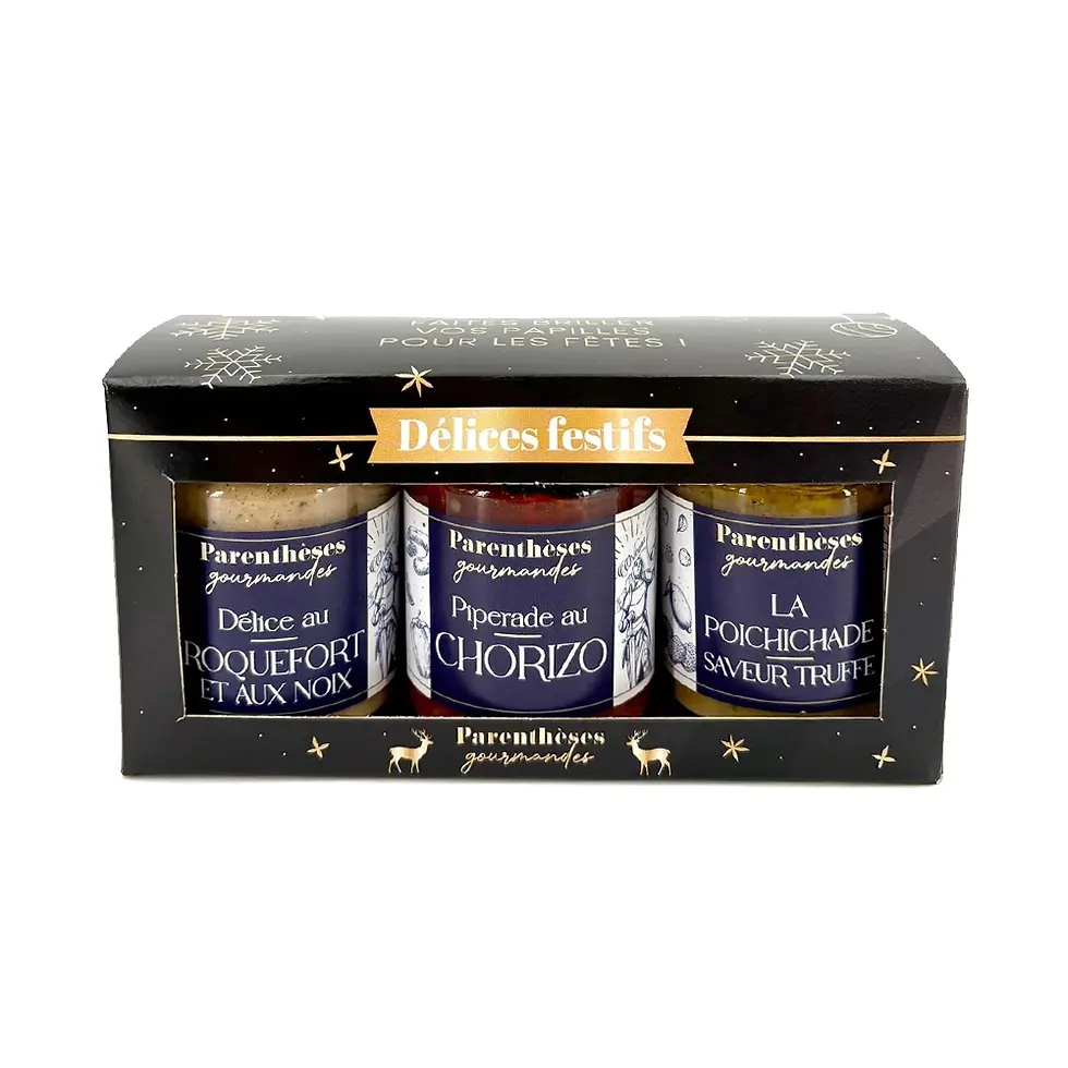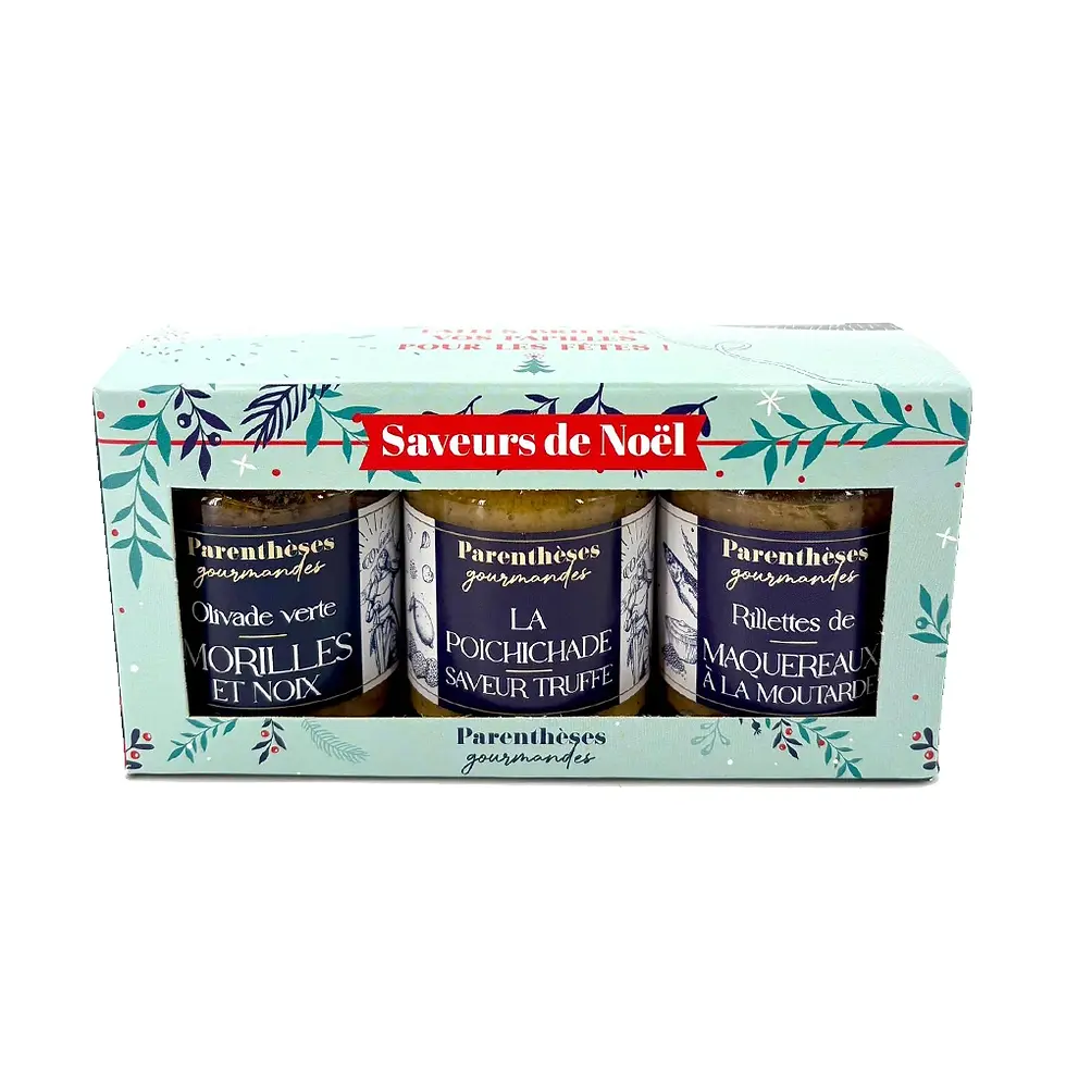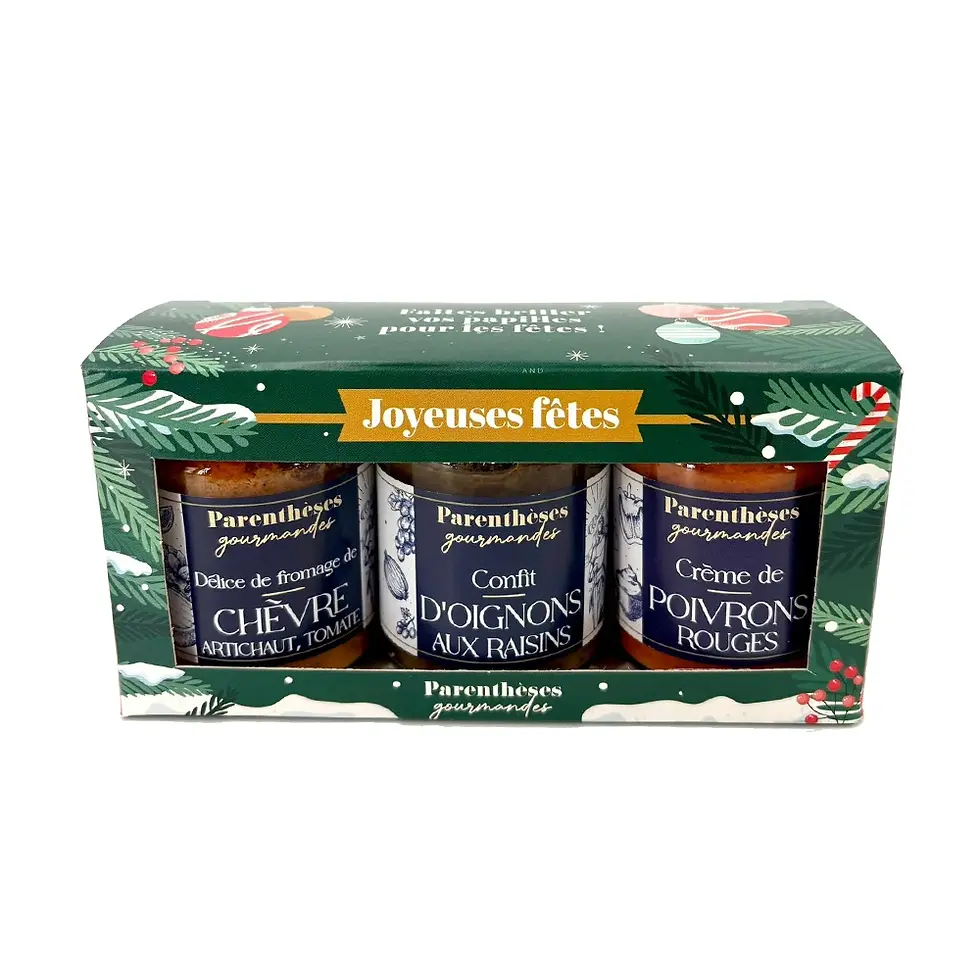 Plongez dans l’ambiance des fêtes avec le coffret “Saveurs de Noël” : trois tartinades artisanales originales pour un apéritif aussi chic que savoureux.